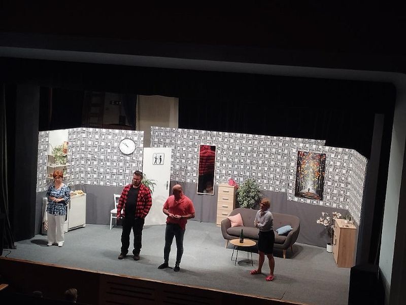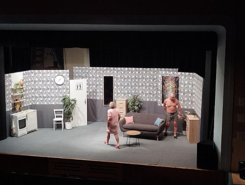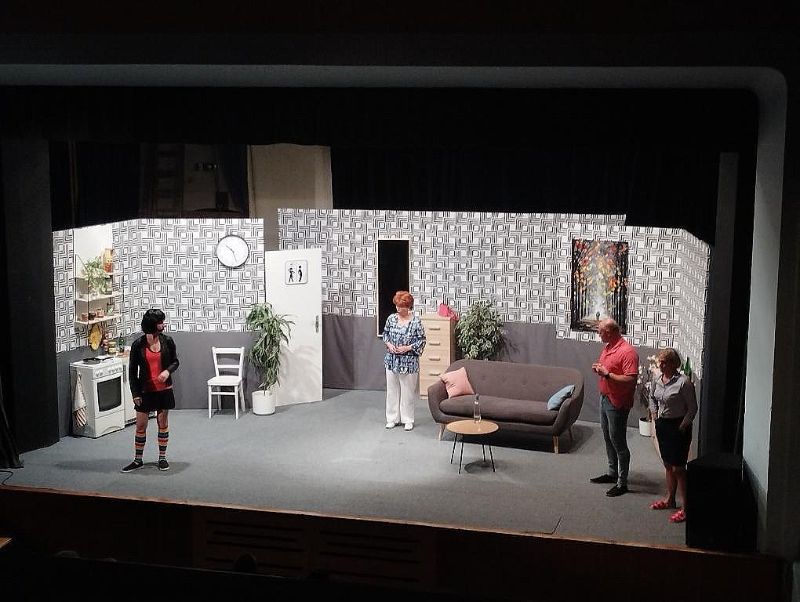 Fotografie z divadleního představení Já jsem ty, miláčku! v podání divadelního spolku Dobrovodští kohouti. Představení se konalo 4. října.