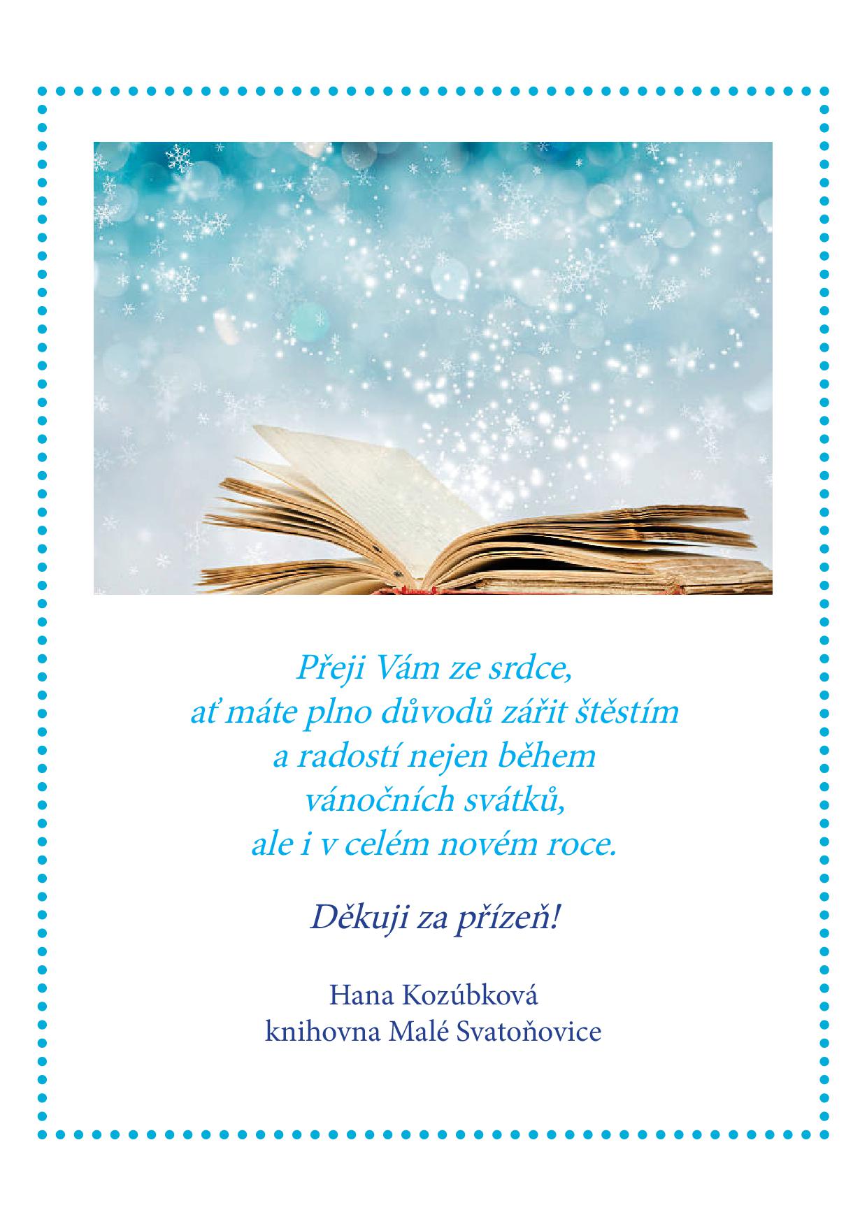 Místní knihovna bude z důvodu dovolené uzavřena 22.12. (pondělí) a 31.12.2025 (středa - Silvestr).