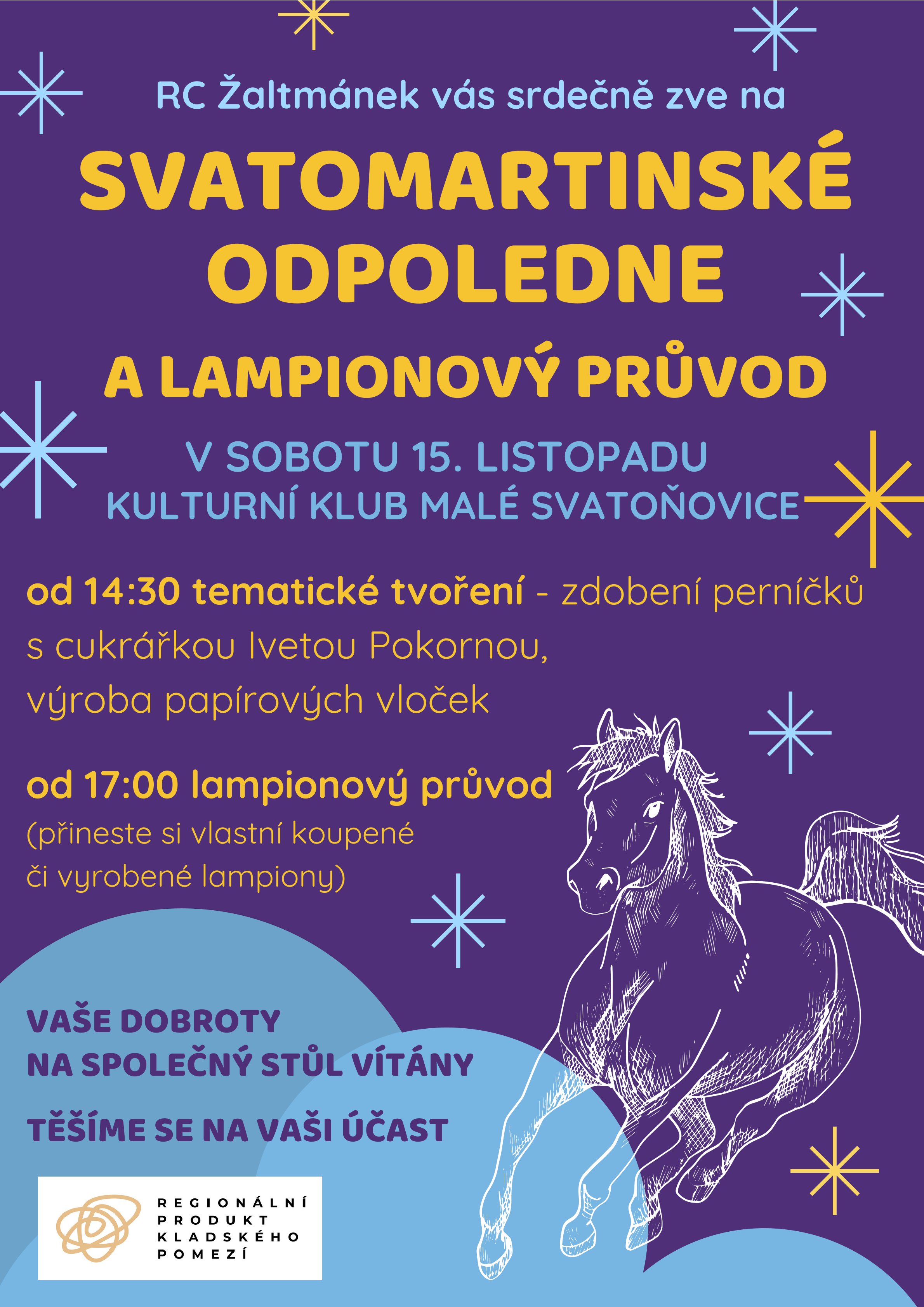 RC Žaltmánek vás srdečně zve na Svatomartinské odpoledne v sobotu 15. listopadu 2025 od 14:30 v kuturním klubu v Malývh Svatoňovicích a lampionový průvod od 17:00. Těšíme se na Vaši účast. Plakát s dalšími informacemi zde.