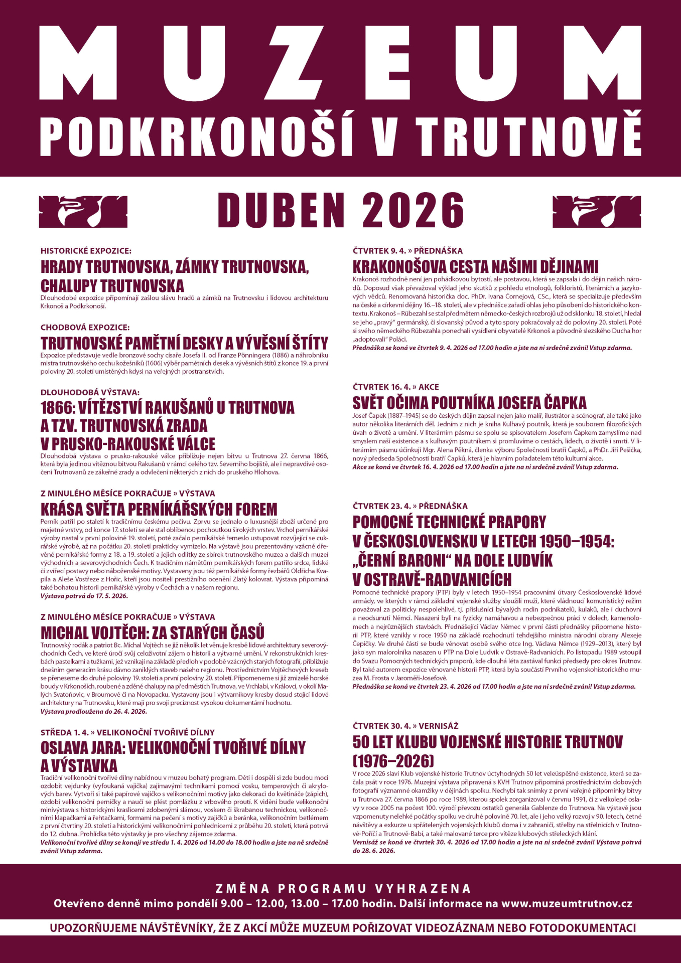 TRUTNOV - Muzeum Podkrkonoší; Duben 2026