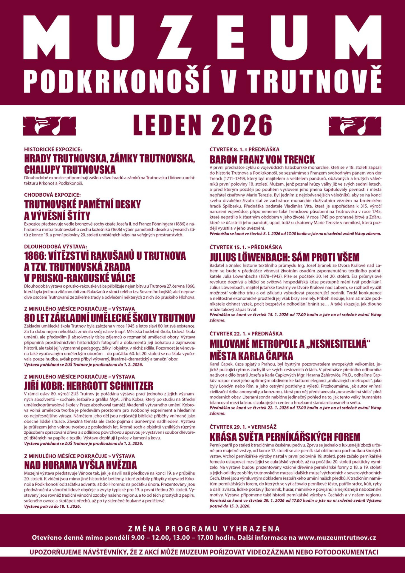 TRUTNOV - Muzeum Podkrkonoší; Leden 2026