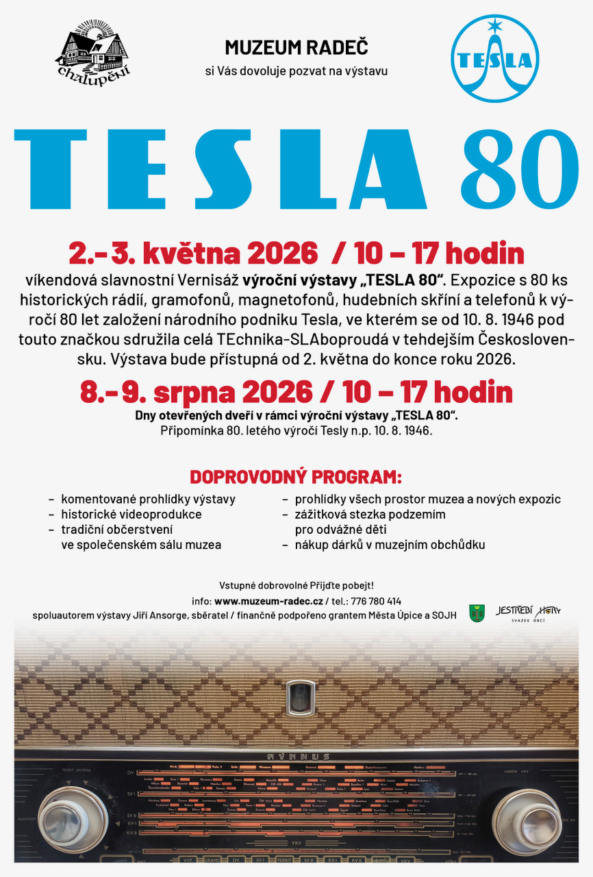 MUZEUM RADEČ; 02.05. - 03.05.2026 - Vernisáž výroční výstavy "TESLA 80"